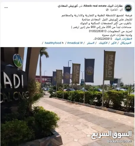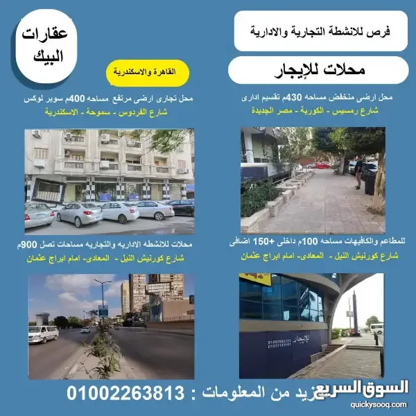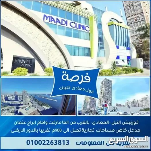 للانشطه التجاريه والاداريه بكورنيش المعادى مساحات من 200م الى 900م