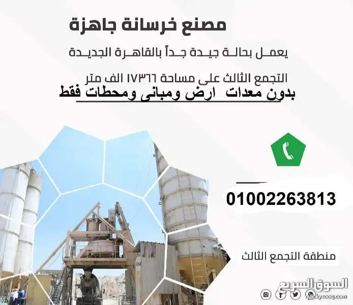 للبيع او الإيجار ارض + مبانى + محطات خرسانه جاهزه