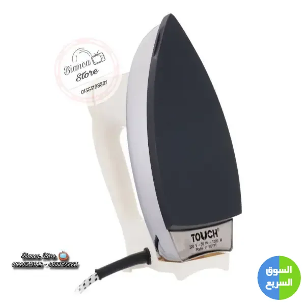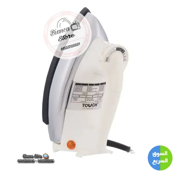 #مكوة جافة ماركة تاتش الزنوكي - 1000 وات - أبيض TOUCH-40405 - قاعدة تيفلون مضادة للإلتصاق .