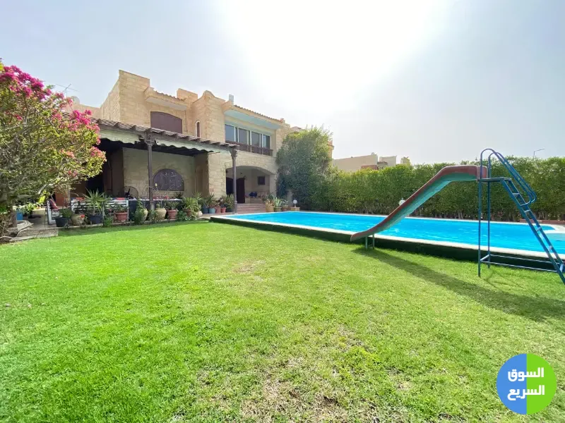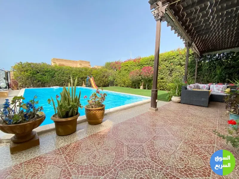 الفيلا فيها برجزلة داخلية علي حمام السباحة مساحته 50 متر و الجاردن مساحتها 1000 متر ب فيو مفتوح-