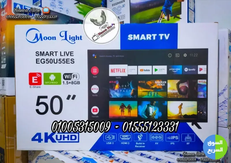 شاشات تلفزيون 50 بوصة ماركة مون لايت Moon Light سمارت أندرويد UHD 4K - رسيفر داخلي - بانل IPS