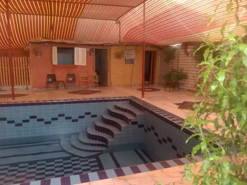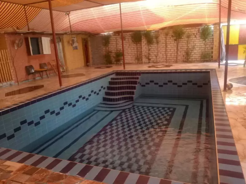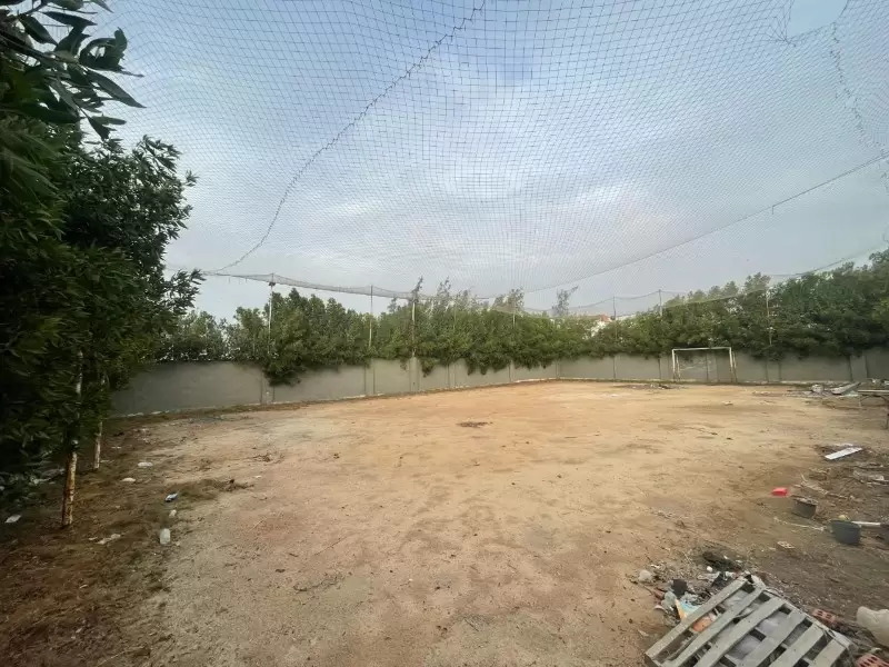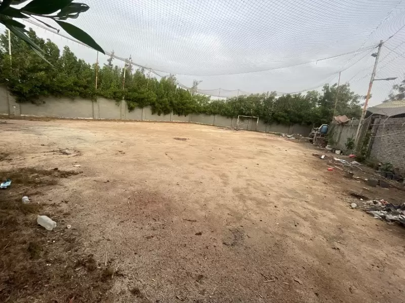 لدواعي السفر قطعة ارض كردون مباني مساحة 1050 متر مقام عليها ملعب خماسي و حمام سباحه ..